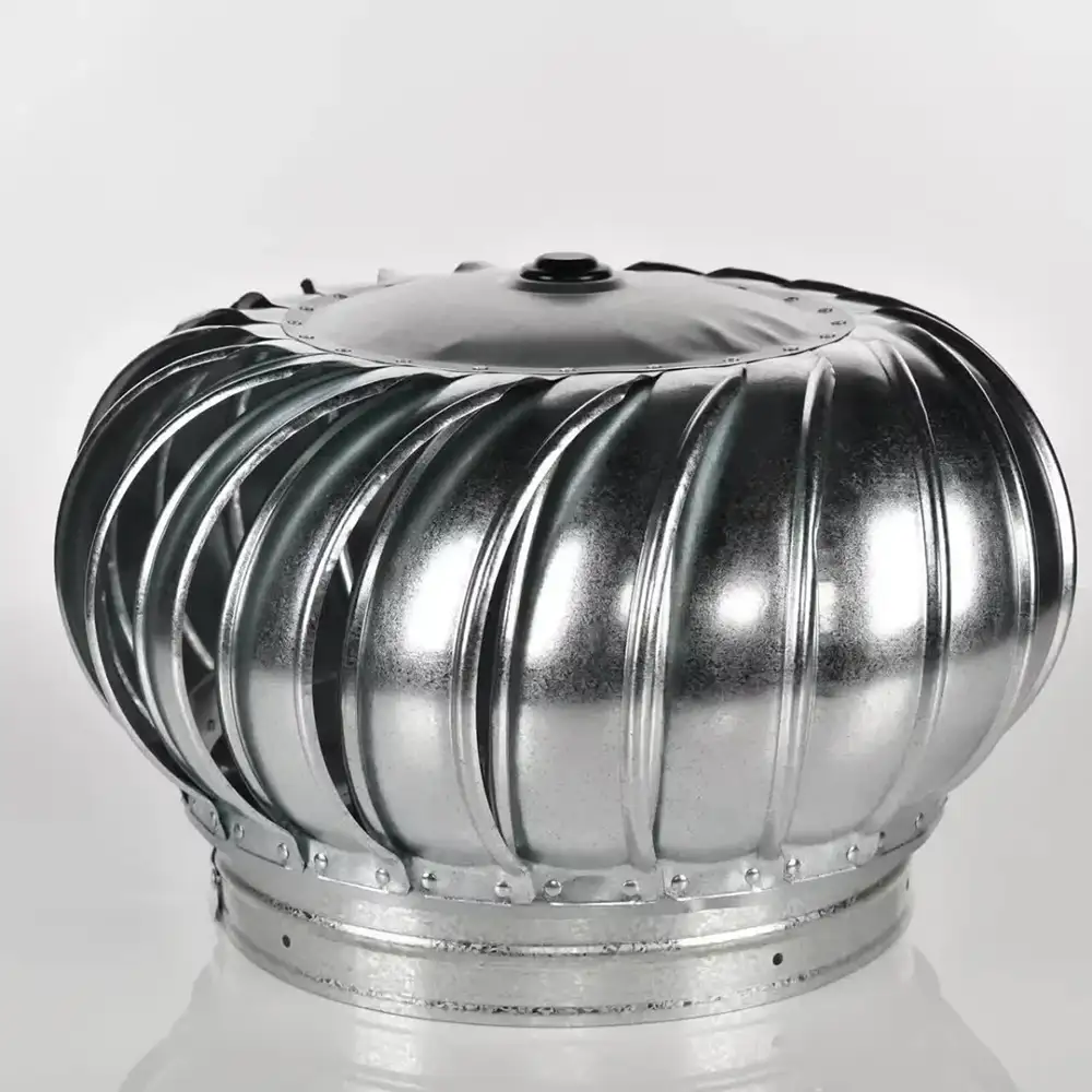 12" (305 mm) galvanized turbine with stainless dual-bearing system uses the wind to pull heat and moisture from the attic.